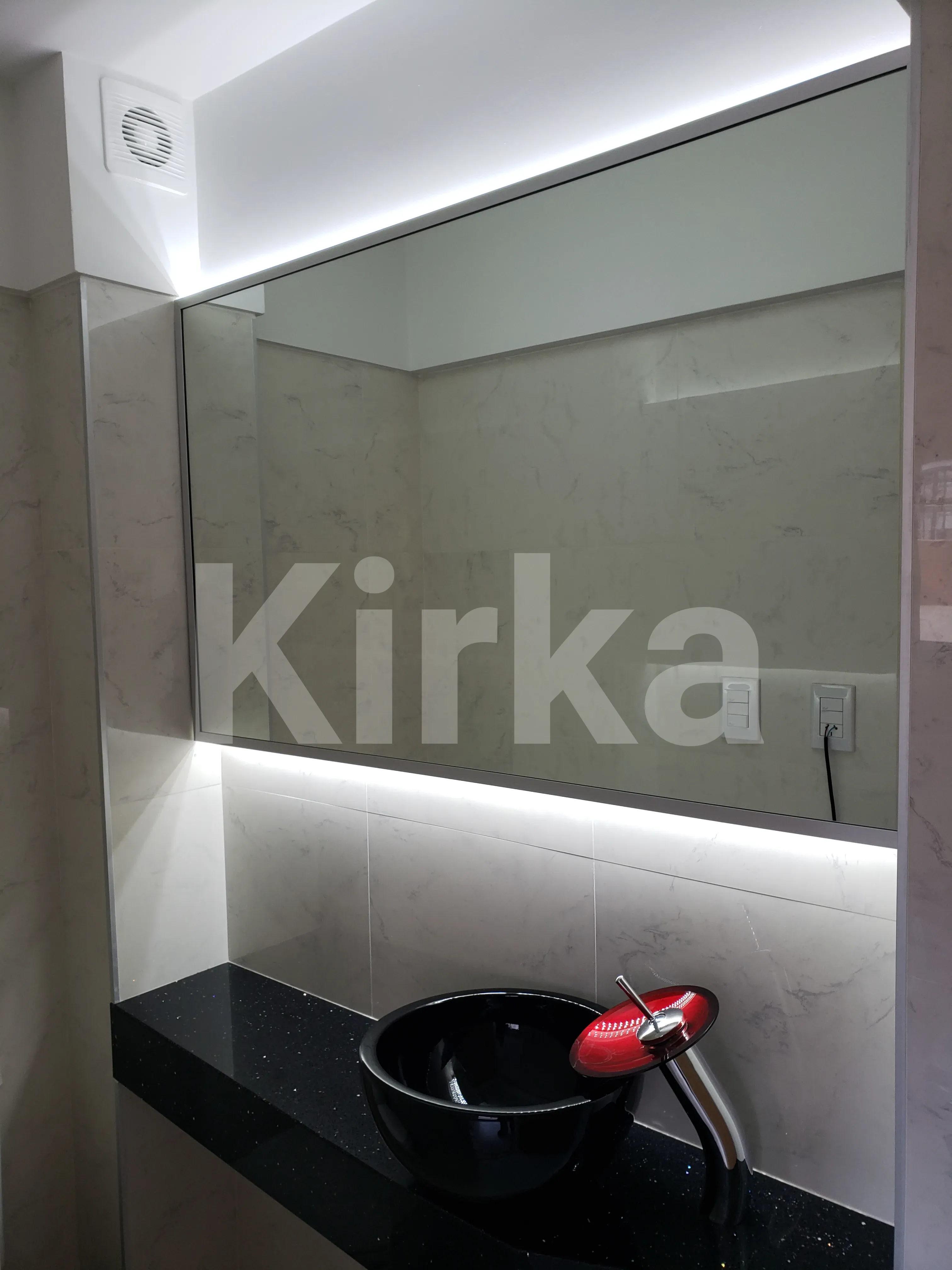 Espejos con la medida que el cliente desee, infinidad de terminaciones y acabados. Retro iluminación por LED Osram (Alemania) con garantía de 5 años y tecnología táctil TOUCH. Opciones: 1) Encendido y apagado deslizando el dedo sobre el espejo. 2) Control entre luz cálida, neutra, fría y atenuación de intensidad. 3) Función anti empañado. 4) Conexión al teléfono vía Bluetooth para disfrutar de musica con parlantes de alta calidad incluidos.